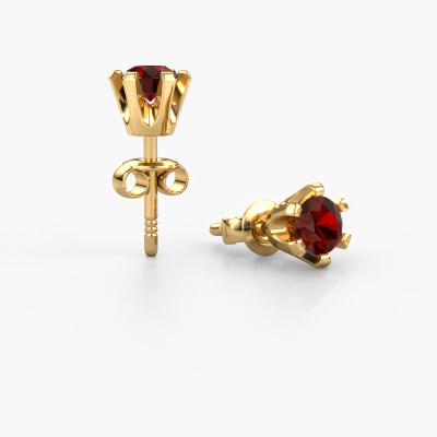 Solitaire stud earrings are classic yet fashionable pieces of jewelry. In solitaire stud earrings, the prong setting is open and only 1 stone is set, which helps reflect light on the gemstone from every angle. Because the garnet are positioned higher, these classic stud earrings become truly eye-catching. We carefully create each detail of these solitaire stud earrings by hand. Our expert goldsmiths set the garnet in these gold stud earrings with the utmost precision, so light reflects evenly from every angle. The stud earrings are set with 4 mm round garnet. The Shana earrings are made just for you by our master goldsmith in our own artisan studio.. Our goldsmiths passionately create your customized stud earrings to your liking with the utmost care. The gold set stud earrings, as shown here, can be customized using our online tool. Feel free to ask our jewel designers for assistance if you want changes made which are unavailable in our online tool. We are happy to answer your questions. Are you on a budget? Please feel free to contact us, so we can go discuss your options. We offer our stud earrings at guaranteed best price, because we make them to order. You won't find such a price anywhere else! To make it easier for you, we offer a 30 day return policy. Check our terms and conditions.