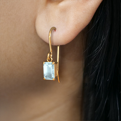 What could possibly be more stunning than a pair of stunning drop earrings? These gold Laurie EME 1 drop earrings are a true eye-catcher. These solitaire drop earrings are set with emerald cut aquamarine. We collaborate with the best suppliers of gemstones and they select our gemstones with great care. Your drop earrings are made by hand in our own artisan studio by our expert goldsmiths. Our goldsmiths passionately create your customized drop earrings to your liking with the utmost care. The gold set drop earrings, as shown here, can be customized using our online tool. Feel free to ask our jewel designers for assistance if you want changes made which are unavailable in our online tool. We are happy to answer your questions.Are you on a budget? Please feel free to contact us, so we can go discuss your options. We offer our drop earrings at guaranteed best price, because we make them to order. You won't find such a price anywhere else!To make it easier for you, we offer a 30 day return policy. Check our terms and conditions.