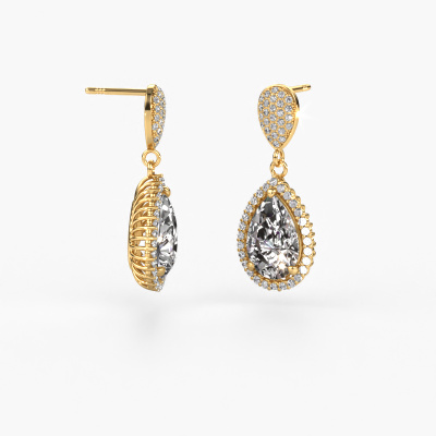 With a pair of exclusive drop earrings, every woman truly stands out. At DiamondsByMe, we create exclusive and extraordinary jewelry and we make use of the finest precious metals and gemstones. These exclusive gold drop earrings are a true work of art! Each tiny detail has been made with patience and passion by our expert jeweler. This requires a keen eye and skillful hand in order for the ring to be carefully created to perfection. And this is exactly what our expert jewelers strive for, perfection! The exquisite lab grown diamonds are set in a way making them seem to shine even brighter. This gives the drop earrings an extra glamorous look. Shown above are our gold Tilly per 2 drop earrings, set with pear lab-grown diamond. The Tilly per 2 earrings are made by a team of passionate goldsmiths and designers. This will make your unique crown jewel eye-catching.. Our goldsmiths passionately create your customized drop earrings to your liking with the utmost care. The gold set drop earrings, as shown here, can be customized using our online tool. Feel free to ask our jewel designers for assistance if you want changes made which are unavailable in our online tool. We are happy to answer your questions. Are you on a budget? Please feel free to contact us, so we can go discuss your options. We offer our drop earrings at guaranteed best price, because we make them to order. You won't find such a price anywhere else! To make it easier for you, we offer a 30 day return policy. Check our terms and conditions.