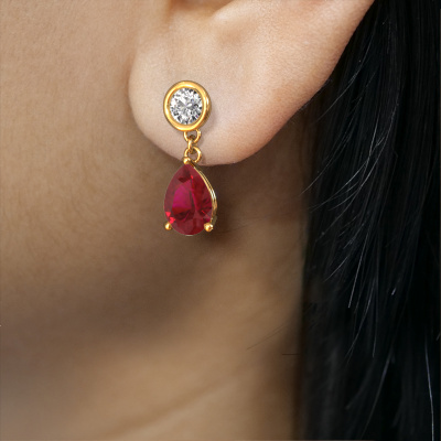 What could possibly be more stunning than a pair of stunning drop earrings? These gold Lacey drop earrings are a true eye-catcher. These graceful drop earrings are set with pear ruby. We collaborate with the best suppliers of gemstones and they select our gemstones with great care. Your drop earrings are made by hand in our own artisan studio by our expert goldsmiths. Customized fantasy graceful drop earrings are the perfect gift! New exquisite designs are added daily by our team of passionate goldsmiths. And each design can be customized. Simply customize the precious metals and the color of gemstones which will be used, for example. This makes your design of the fantasy Lacey drop earrings truly unique!After receiving your order, our goldsmiths will passionately start the creative process of making your drop earrings in our own studio. Because we don't have a big stockpile, these costs will not be passed on to you. Our pricing is proof of that! We offer top quality jewels at lowest price, guaranteed.To make it easier for you, we offer a 30 day return policy. Check our terms and conditions.