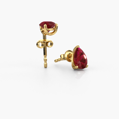 Solitaire stud earrings are both a traditional and a trendy piece of jewelry. Solitaire stud earrings have an open prong setting, therefore, light reflects beautifully on the gemstones. Because the ruby are set high, these traditional stud earrings are a stunning eye-catcher. We will create your solitaire stud earrings by hand with the utmost care in our DiamondsByMe studio. For maximum shine, our goldsmith sets the ruby in the gold stud earrings with great care. These solitaire stud earrings are set with pear ruby of 7x5 mm. De Sam PER earrings are passionately made by one of our master goldsmiths.. What could possibly be more beautiful than personally designed traditional stud earrings, handmade by yours truly? Please, feel free to customize each model by choosing different precious metals and gemstones. This makes your stud earrings truly unique. These stud earrings can be customized to your liking. It goes without saying that you can also ask us for help. We are more than willing to assist in designing your traditional stud earrings. If you like but still have specific wishes concerning customizing your design, such as adding a gemstone which isn't mentioned in the list, feel free to contact us. We will gladly inform you on different options.By using a combination of the latest modern techniques, combined with ancient crafting, we can make all our stud earrings in our own studio. Each jewel is made to order. This is advantageous because we can offer you a price you won't find anywhere else. To make it easier for you, we offer a 30 day return policy. Check our terms and conditions.
