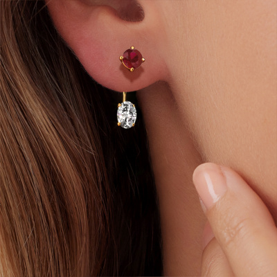 With a pair of exclusive drop earrings, every woman truly stands out. At DiamondsByMe, we create fashionable and extraordinary jewelry and we make use of the finest precious metals and gemstones. These exclusive gold drop earrings are a true work of art! Each tiny detail has been made with patience and passion by our expert jeweler. This requires a keen eye and skillful hand in order for the ring to be carefully created to perfection. And this is exactly what our expert jewelers strive for, perfection! The exquisite ruby are set in a way making them seem to shine even brighter. This gives the drop earrings an extra glamorous look. Shown above are our gold Kate RND-OVL drop earrings, set with round ruby. The Kate RND-OVL earrings are unique pieces of jewelry because they can be customized to your liking.. What could possibly be more beautiful than personally designed fashionable drop earrings, handmade by yours truly? Please, feel free to customize each model by choosing different precious metals and gemstones. This makes your drop earrings truly unique. These drop earrings can be customized to your liking. It goes without saying that you can also ask us for help. We are more than willing to assist in designing your fashionable drop earrings. If you like but still have specific wishes concerning customizing your design, such as adding a gemstone which isn't mentioned in the list, feel free to contact us. We will gladly inform you on different options. Because we design and deliver our own drop earrings, we can offer you drop earrings at a price you won't find anywhere else. drop earrings are made to order, which helps prevent excess supplies, so we can make you a great price offer. We understand it feels risky, buying your drop earrings online, but we will gladly assist in the designing process, taking your budget into consideration. To make it easier for you, we offer a 30 day return policy. Check our terms and conditions.