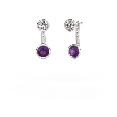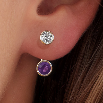 We believe this set of hanging Halle earrings, set with exquisite round amethyst, look best when set with diamonds. But the best part is that you get to choose your own birthstones to customize the design Halle white gold earrings to your liking. In the example shown above they are set with amethyst 6 mm. Each gemstone is selected with great care and the utmost precision for a maximum shine. Because we design and deliver our own earrings, we can offer you earrings at a price you won't find anywhere else. earrings are made to order, which helps prevent excess supplies, so we can make you a great price offer. We understand it feels risky, buying your earrings online, but we will gladly assist in the designing process, taking your budget into consideration.To make it easier for you, we offer a 30 day return policy. Check our terms and conditions.