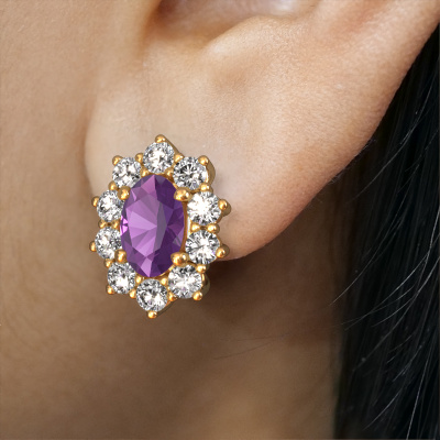 We believe this set of Lady Diana Leesa earrings, set with exquisite oval amethyst, look best when set with diamonds. But the best part is that you get to choose your own birthstones to customize the classic Leesa gold earrings to your liking. In the example shown above they are set with amethyst 6x4 mm. Each gemstone is selected with great care and the utmost precision for a maximum shine. Are you on a budget? Please feel free to contact us, so we can go discuss your options. We offer our earrings at guaranteed best price, because we make them to order. You won't find such a price anywhere else!To make it easier for you, we offer a 30 day return policy. Check our terms and conditions.