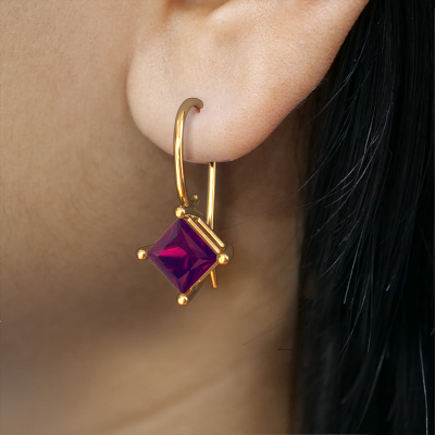 What could possibly be more stunning than a pair of stunning drop earrings? These gold Cleo SQR drop earrings are a true eye-catcher. These 4 prongs drop earrings are set with princess rhodolite. We collaborate with the best suppliers of gemstones and they select our gemstones with great care. Your drop earrings are made by hand in our own artisan studio by our expert goldsmiths. Customized modern 4 prongs drop earrings are the perfect gift! New exquisite designs are added daily by our team of passionate goldsmiths. And each design can be customized. Simply customize the precious metals and the color of gemstones which will be used, for example. This makes your design of the modern Cleo SQR drop earrings truly unique!Are you on a budget? Please feel free to contact us, so we can go discuss your options. We offer our drop earrings at guaranteed best price, because we make them to order. You won't find such a price anywhere else!To make it easier for you, we offer a 30 day return policy. Check our terms and conditions.