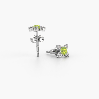 The charming platinum Nina earrings are set with stunning round peridot. These earrings are ideally combined with colored gemstones, but if you prefer other gemstones, feel free to choose from our collection. Our expert jewelers would love to create handmade earrings for you in our own crafting studio. We use a unique concept, a perfect combination of ancient craftsmanship and the latest modern techniques. This enables us to design your earrings to perfection. The earrings, as shown here, are set with peridot 3 mm. Customized fantasy charming earrings are the perfect gift! New exquisite designs are added daily by our team of passionate goldsmiths. And each design can be customized. Simply customize the precious metals and the color of gemstones which will be used, for example. This makes your design of the fantasy Nina earrings truly unique!De Nina earrings are made to embellish your ears. Each jewel is lovingly made by hand by our goldsmiths.Because we design and deliver our own earrings, we can offer you earrings at a price you won't find anywhere else. earrings are made to order, which helps prevent excess supplies, so we can make you a great price offer. We understand it feels risky, buying your earrings online, but we will gladly assist in the designing process, taking your budget into consideration.To make it easier for you, we offer a 30 day return policy. Check our terms and conditions.