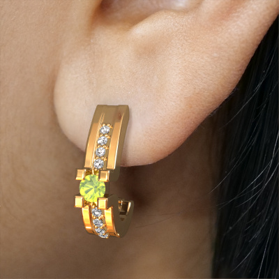 Each modern woman should own her own pair of modern earrings. Buy them from DiamondsByMe. In order to create our exquisite jewels, our expert goldsmiths use the best precious metals and the finest gemstones. Take this modern gold peridot set of Myrthe earrings, for example. Each peridot is selected with great care, because we believe your earrings should only be adorned with the finest peridot gemstones. Our artisan goldsmiths create your earrings in our own crafting studio and they set the peridot in the earrings with the utmost care. Subsequently, they are crafted and polished until it is evident: the perfect earrings are done! The Myrthe earrings are made to embellish your ears. Each jewel is lovingly made by hand by our goldsmiths.. The best part of these elegant earrings is that you can customize it to your own liking. Your style, your choice, your earrings. On top of that, your modern gold earrings will be made by hand with eco-friendly materials! Please feel free to easily customize the earrings, using our online tool. Because we design and deliver our own earrings, we can offer you earrings at a price you won't find anywhere else. earrings are made to order, which helps prevent excess supplies, so we can make you a great price offer. We understand it feels risky, buying your earrings online, but we will gladly assist in the designing process, taking your budget into consideration. To make it easier for you, we offer a 30 day return policy. Check our terms and conditions.