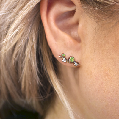 How would you describe your style? Are you looking for something slightly different? These fantasy graceful white gold stud earrings are unique and created by our expert goldsmiths. These fantasy stud earrings are set with peridot. Each of the peridot is carefully selected, because we believe your stud earrings should be adorned with nothing but the most exquisite gemstones. Wouldn't you agree? The Jin made just for you, with great attention to detail and design.. The best part of these graceful stud earrings is that you can customize it to your own liking. Your style, your choice, your stud earrings. On top of that, your fantasy white gold stud earrings will be made by hand with eco-friendly materials! Please feel free to easily customize the stud earrings, using our online tool.Because we design and deliver our own stud earrings, we can offer you stud earrings at a price you won't find anywhere else. stud earrings are made to order, which helps prevent excess supplies, so we can make you a great price offer. We understand it feels risky, buying your stud earrings online, but we will gladly assist in the designing process, taking your budget into consideration. To make it easier for you, we offer a 30 day return policy. Check our terms and conditions.