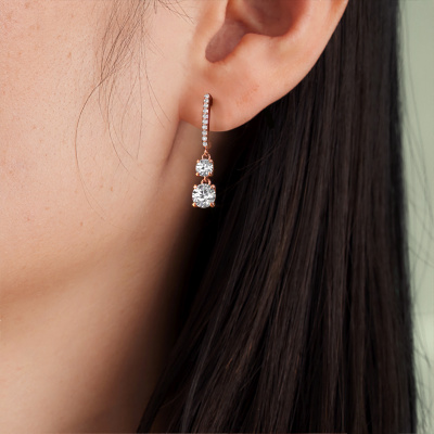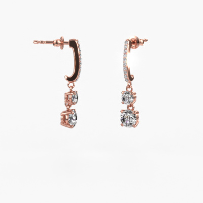 What could possibly be more stunning than a pair of stunning drop earrings? These rose gold Tanja 2 drop earrings are a true eye-catcher. These hanging drop earrings are set with round diamond. We collaborate with the best suppliers of gemstones and they select our gemstones with great care. Your drop earrings are made by hand in our own artisan studio by our expert goldsmiths. The best part of these hanging drop earrings is that you can customize it to your own liking. Your style, your choice, your drop earrings. On top of that, your exclusive rose gold drop earrings will be made by hand with eco-friendly materials! Please feel free to easily customize the drop earrings, using our online tool.Because we design and deliver our own drop earrings, we can offer you drop earrings at a price you won't find anywhere else. drop earrings are made to order, which helps prevent excess supplies, so we can make you a great price offer. We understand it feels risky, buying your drop earrings online, but we will gladly assist in the designing process, taking your budget into consideration.To make it easier for you, we offer a 30 day return policy. Check our terms and conditions.