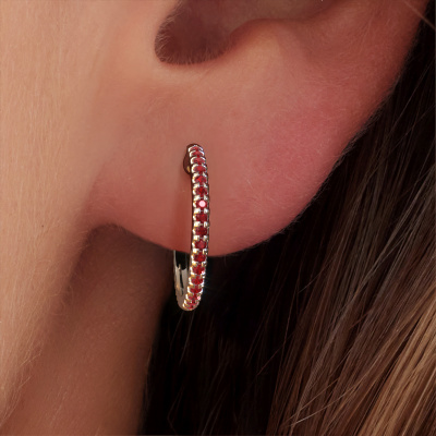 This set of best prices Jackie 15 mm A hoop earrings are beautiful small hoop earrings to finish off your look. Our expert jewelers combine the latest techniques with ancient craftsmanship. They make your hoop earrings by hand in our own crafting studio. The ruby of your choosing are set in your hoop earrings with the utmost precision, so light reflects evenly from every angle. In the end you get stunning, unique hoop earrings that match your own style perfectly! Take these platinum hoop earrings set with ruby 1.2 mm, for example. Our goldsmiths passionately create your customized hoop earrings to your liking with the utmost care. The platinum set hoop earrings, as shown here, can be customized using our online tool. Feel free to ask our jewel designers for assistance if you want changes made which are unavailable in our online tool. We are happy to answer your questions.The Jackie 15 mm A made just for you, with great attention to detail and design.Are you on a budget? Please feel free to contact us, so we can go discuss your options. We offer our hoop earrings at guaranteed best price, because we make them to order. You won't find such a price anywhere else!To make it easier for you, we offer a 30 day return policy. Check our terms and conditions.