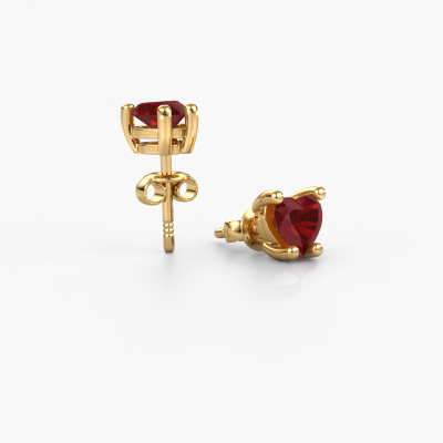 Solitaire earrings are trendy yet fashionable pieces of jewelry. In solitaire earrings, the prong setting is open and only 1 stone is set, which helps reflect light on the gemstone from every angle. Because the ruby are positioned higher, these trendy earrings become truly eye-catching. We carefully create each detail of these solitaire earrings by hand. Our expert goldsmiths set the ruby in these gold earrings with the utmost precision, so light reflects evenly from every angle. The earrings are set with 5 mm heart ruby. The Sam Heart earrings are made just for you by our master goldsmith in our own artisan studio.. How do you like these trendy gold earrings? Simply customize this Sam Heart earrings, using our online tool. Subsequently, your personal heart Sam Heart earrings will be made by hand by our goldsmiths. Precious metals and gemstones can be customized to your liking. Do you have specific preferences which are unavailable in our online tool? Please feel free to contact us. We will customize your personal trendy earrings to your liking. Because we design and deliver our own earrings, we can offer you earrings at a price you won't find anywhere else. earrings are made to order, which helps prevent excess supplies, so we can make you a great price offer. We understand it feels risky, buying your earrings online, but we will gladly assist in the designing process, taking your budget into consideration. To make it easier for you, we offer a 30 day return policy. Check our terms and conditions.