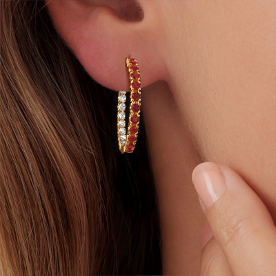 This set of round Miki 20mm hoop earrings are beautiful small hoop earrings to finish off your look. Our expert jewelers combine the latest techniques with ancient craftsmanship. They make your hoop earrings by hand in our own crafting studio. The ruby of your choosing are set in your hoop earrings with the utmost precision, so light reflects evenly from every angle. In the end you get stunning, unique hoop earrings that match your own style perfectly! Take these gold hoop earrings set with ruby 2 mm, for example. Customized luxury round hoop earrings are the perfect gift! New exquisite designs are added daily by our team of passionate goldsmiths. And each design can be customized. Simply customize the precious metals and the color of gemstones which will be used, for example. This makes your design of the luxury Miki 20mm hoop earrings truly unique!The Miki 20mm earrings are made just for you by our master goldsmith in our own artisan studio.By using a combination of the latest modern techniques, combined with ancient crafting, we can make all our hoop earrings in our own studio. Each jewel is made to order. This is advantageous because we can offer you a price you won't find anywhere else.To make it easier for you, we offer a 30 day return policy. Check our terms and conditions.