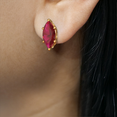 Solitaire stud earrings are fantasy yet fashionable pieces of jewelry. In solitaire stud earrings, the prong setting is open and only 1 stone is set, which helps reflect light on the gemstone from every angle. Because the ruby are positioned higher, these fantasy stud earrings become truly eye-catching. We carefully create each detail of these solitaire stud earrings by hand. Our expert goldsmiths set the ruby in these gold stud earrings with the utmost precision, so light reflects evenly from every angle. The stud earrings are set with 10x5 mm marquise ruby. The Sam MRQ earrings are passionately made by one of our master goldsmiths.. Our goldsmiths passionately create your customized stud earrings to your liking with the utmost care. The gold set stud earrings, as shown here, can be customized using our online tool. Feel free to ask our jewel designers for assistance if you want changes made which are unavailable in our online tool. We are happy to answer your questions. By using a combination of the latest modern techniques, combined with ancient crafting, we can make all our stud earrings in our own studio. Each jewel is made to order. This is advantageous because we can offer you a price you won't find anywhere else. To make it easier for you, we offer a 30 day return policy. Check our terms and conditions.