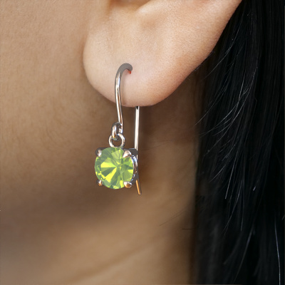 This is our set of classic Laurie RND 1 drop earrings. In this example the drop earrings are set with round peridot. Each of our peridot gemstones is carefully selected and positioned in your drop earrings with great precision so light hits the peridot from every angle. We believe these solitaire white gold drop earrings look best set with colored gemstones. But that is entirely up to you. As soon as you finished designing your classic drop earrings with our online tool, our goldsmiths will start their creative process of making your drop earrings. This will be done with passion and care, according ancient crafting. On top of that, our jewels are made of eco-friendly materials. If you want specific changes made to your Laurie RND 1 drop earrings, that are unavailable in our online tool, please feel free to contact our expert designers.Are you on a budget? Please feel free to contact us, so we can go discuss your options. We offer our drop earrings at guaranteed best price, because we make them to order. You won't find such a price anywhere else!To make it easier for you, we offer a 30 day return policy. Check our terms and conditions.