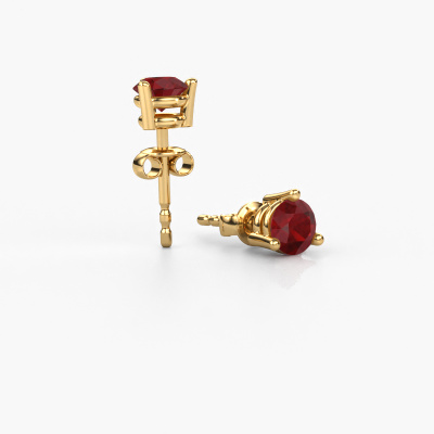 Solitaire stud earrings are classic yet fashionable pieces of jewelry. In solitaire stud earrings, the prong setting is open and only 1 stone is set, which helps reflect light on the gemstone from every angle. Because the ruby are positioned higher, these classic stud earrings become truly eye-catching. We carefully create each detail of these solitaire stud earrings by hand. Our expert goldsmiths set the ruby in these gold stud earrings with the utmost precision, so light reflects evenly from every angle. The stud earrings are set with 4.7 mm round ruby. The Somer earrings are made just for you by our master goldsmith in our own artisan studio.. As soon as you finished designing your classic stud earrings with our online tool, our goldsmiths will start their creative process of making your stud earrings. This will be done with passion and care, according ancient crafting. On top of that, our jewels are made of eco-friendly materials. If you want specific changes made to your Somer stud earrings, that are unavailable in our online tool, please feel free to contact our expert designers. By using our modern techniques, we can design and customize the finest quality jewels with the utmost care for you. Our stud earrings are always priced 30 percent lower than other jewelers. We make stud earrings to order so we don't have to maintain a large stock. If you have a certain budget, we are more than happy to advice you accordingly. To make it easier for you, we offer a 30 day return policy. Check our terms and conditions.