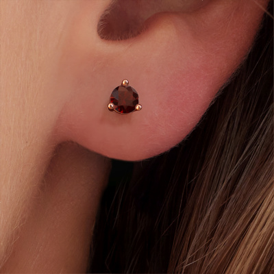 Solitaire stud earrings are classic yet fashionable pieces of jewelry. In solitaire stud earrings, the prong setting is open and only 1 stone is set, which helps reflect light on the gemstone from every angle. Because the garnet are positioned higher, these classic stud earrings become truly eye-catching. We carefully create each detail of these solitaire stud earrings by hand. Our expert goldsmiths set the garnet in these rose gold stud earrings with the utmost precision, so light reflects evenly from every angle. The stud earrings are set with 4.7 mm round garnet. The Somer earrings are made just for you by our master goldsmith in our own artisan studio.. As soon as you finished designing your classic stud earrings with our online tool, our goldsmiths will start their creative process of making your stud earrings. This will be done with passion and care, according ancient crafting. On top of that, our jewels are made of eco-friendly materials. If you want specific changes made to your Somer stud earrings, that are unavailable in our online tool, please feel free to contact our expert designers. By using our modern techniques, we can design and customize the finest quality jewels with the utmost care for you. Our stud earrings are always priced 30 percent lower than other jewelers. We make stud earrings to order so we don't have to maintain a large stock. If you have a certain budget, we are more than happy to advice you accordingly. To make it easier for you, we offer a 30 day return policy. Check our terms and conditions.