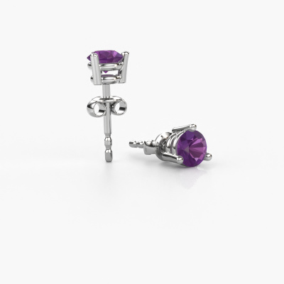 Solitaire stud earrings are classic yet fashionable pieces of jewelry. In solitaire stud earrings, the prong setting is open and only 1 stone is set, which helps reflect light on the gemstone from every angle. Because the amethysten are positioned higher, these classic stud earrings become truly eye-catching. We carefully create each detail of these solitaire stud earrings by hand. Our expert goldsmiths set the amethysten in these white gold stud earrings with the utmost precision, so light reflects evenly from every angle. The stud earrings are set with 4.7 mm round amethysten. The Somer earrings are made just for you by our master goldsmith in our own artisan studio.. As soon as you finished designing your classic stud earrings with our online tool, our goldsmiths will start their creative process of making your stud earrings. This will be done with passion and care, according ancient crafting. On top of that, our jewels are made of eco-friendly materials. If you want specific changes made to your Somer stud earrings, that are unavailable in our online tool, please feel free to contact our expert designers. By using our modern techniques, we can design and customize the finest quality jewels with the utmost care for you. Our stud earrings are always priced 30 percent lower than other jewelers. We make stud earrings to order so we don't have to maintain a large stock. If you have a certain budget, we are more than happy to advice you accordingly. To make it easier for you, we offer a 30 day return policy. Check our terms and conditions.
