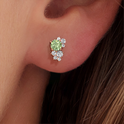 How would you describe your style? Are you looking for something slightly different? These trendy special rose gold stud earrings are unique and created by our expert goldsmiths. These trendy stud earrings are set with green lab grown diamond. Each