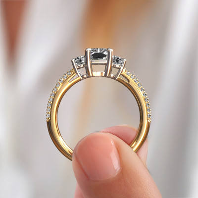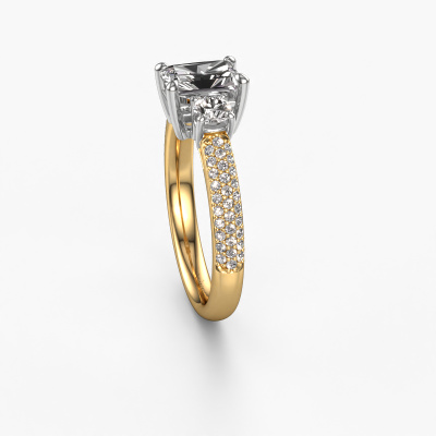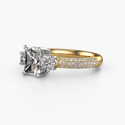 This 14 Carat gold ring is called Marielle RAD and is set with 1.67 crt diamond. This exclusive gold 3-stone engagement ring is a true work of art! The ornaments are crafted with a lot of patience and great passion. In order to create this ring with great precision, this craft requires a keen eye and skillful hand. A challenge which ignites a fire in our expert goldsmith. The exquisite diamonds are set in a special way so they stand out even more. This gives the ring an even more glamorous appearance. The graceful engagement ring is actually unique on its own because of the gemstones which we carefully select especially for this ring. On top of that you select the precious metals which will be used to create a unique ring for the most extraordinary woman in your life! This jewel is created to add sparkle to your finger, each jewel is lovingly made by hand by our goldsmiths.By using a combination of the latest modern techniques, combined with ancient crafting, we can make all our engagement rings in our own studio. Each jewel is made to order. This is advantageous because we can offer you a price you won't find anywhere else.Different styles of new rings are made daily by our team. Perhaps you have found a 3-stone engagement ring somewhere. One you would like to give to your loved one. Please feel free to share your thoughts and design with our jewel designers. We would love to turn your design into a contemporary engagement ring. You can follow the development of your ring design because we use very detailed 3D drawings. On top of that, you can order a dummy of the design. A dummy is a plastic ring, which can be shaped according your ring design. You can try it on and check if the engagement ring is up to standard. We will gladly send you a non-binding offer, based on a fair price/ quality ratio. The offer will baffle you, considering the quality of the ring and gemstones.To make it easier for you, we offer a 30 day return policy. Check our terms and conditions.