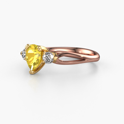 This 14 Carat rose gold ring is called Amie per and is set with 7x5 mm yellow sapphire. For you, there is only one person in your life who stands out in a crowd. Only one that makes your heart skip a beat. A true gem! She, above all others, deserves a special gift. A unique customized jewel made in her honor. We believe this ring is perfect for your special moment. Each detail of this exclusive rose gold 3-stone engagement ring is selected by hand, crafted and polished by our expert goldsmith in our own artisan studio. We strive to achieve the perfect design and composition of the ring, so it enhances the unique features of our yellow sapphire, and lets them shine even brighter. It takes a lot of precision to make but in the end it pays off because of the sheer beauty of the ring. And that is our main goal. It's what gets us excited. The great thing about our online tool is, that you can design your own jewelry into a unique, personalized piece. This unique special engagement ring is created with the precious metal combination of rose gold and gold. But of course you are completely free to select other colors. Each piece of jewelry is made by a team of passionate goldsmiths and jewel designers. This will make your crown jewel truly eye-catching.By using a combination of the latest modern techniques, combined with ancient crafting, we can make all our engagement rings in our own studio. Each jewel is made to order. This is advantageous because we can offer you a price you won't find anywhere else.Do you have a specific ring in mind? One you came across somewhere. Please feel free to tell us your wishes and we will turn your design into a unique engagement ring. You can follow the development of your ring design because we use 3D drawings. This gives you a realistic preview of your design. We will gladly send you a non-binding offer, based on a fair price/ quality ratio. It will amaze you.To make it easier for you, we offer a 30 day return policy. Check our terms and conditions.