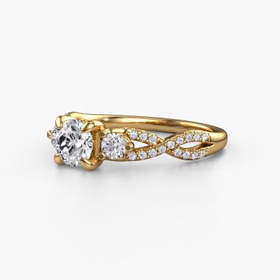 This 14 Carat gold ring is called Marilou RND and is set with 0.96 crt lab-grown diamond. This exclusive gold 3-stone engagement ring is a true work of art! The ornaments are crafted with a lot of patience and great passion. In order to create this ring with great precision, this craft requires a keen eye and skillful hand. A challenge which ignites a fire in our expert goldsmith. The exquisite lab grown diamonds are set in a special way so they stand out even more. This gives the ring an even more glamorous appearance. The split band engagement ring is actually unique on its own because of the gemstones which we carefully select especially for this ring. On top of that you select the precious metals which will be used to create a unique ring for the most extraordinary woman in your life! This jewel is made just for you, with attention to detail and design.Are you on a budget? Please feel free to contact us, so we can go discuss your options. We offer our engagement rings at guaranteed best price, because we make them to order. You won't find such a price anywhere else!Have you found a specific engagement ring somewhere which you would like to give to your loved one? Please feel free to express your wishes to our jewel designers because we would be honored to turn your design into a fantasy engagement ring. You can follow the development of your ring design because we use 3D drawings. This gives you a realistic preview of how your design will look. You can also preorder a dummy. A dummy is a plastic ring, which can be shaped according your ring design. You can try it on and check if its width and size are suitable for you. We will gladly send you a non-binding offer, based on a fair price/ quality ratio. It will amaze you, considering the quality of the ring and gemstones.To make it easier for you, we offer a 30 day return policy. Check our terms and conditions.