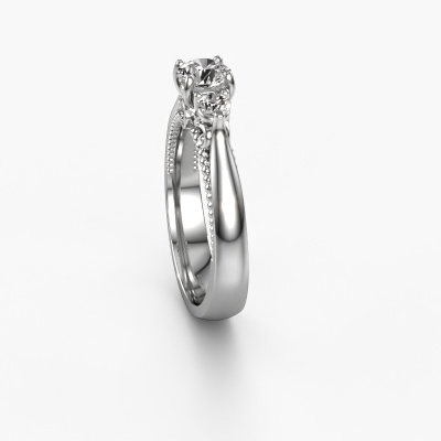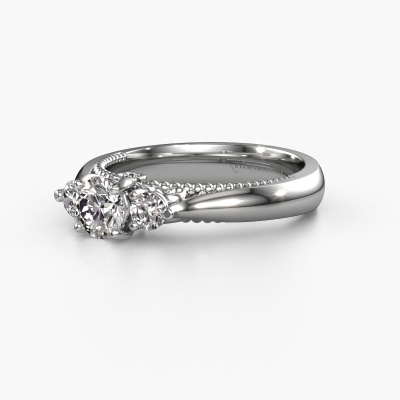 This platinum ring is called Tiffani and is set with 0.74 crt lab-grown diamond. This exclusive platinum 3-stone engagement ring is a true work of art! The ornaments are crafted with a lot of patience and great passion. In order to create this ring with great precision, this craft requires a keen eye and skillful hand. A challenge which ignites a fire in our expert goldsmith. The exquisite lab grown diamonds are set in a special way so they stand out even more. This gives the ring an even more glamorous appearance. The ajour engagement ring is actually unique on its own because of the gemstones which we carefully select especially for this ring. On top of that you select the precious metals which will be used to create a unique ring for the most extraordinary woman in your life! This jewel is made just for you by our master goldsmiths in our own studio.After receiving your order, our goldsmiths will passionately start the creative process of making your engagement ring in our own studio. Because we don't have a big stockpile, these costs will not be passed on to you. Our pricing is proof of that! We offer top quality jewels at lowest price, guaranteed.Have you found a specific engagement ring somewhere which you would like to give to your loved one? Please feel free to express your wishes to our jewel designers because we would be honored to turn your design into a unique engagement ring. You can follow the development of your ring design because we use 3D drawings. This gives you a realistic preview of how your design will look. You can also preorder a dummy. A dummy is a plastic ring, which can be shaped according your ring design. You can try it on and check if its width and size are suitable for you. We will gladly send you a non-binding offer, based on a fair price/ quality ratio. It will amaze you, considering the quality of the ring and gemstones.To make it easier for you, we offer a 30 day return policy. Check our terms and conditions.