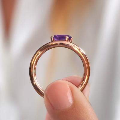In your eyes, no one else compares to her. She is one in a million, unlike anyone else and pure? These qualities are emphasized perfectly by our design rose gold solitaire amethyst ring. This amethyst is carefully selected by our keen artisan