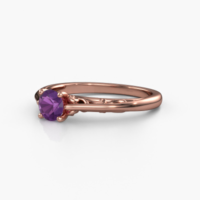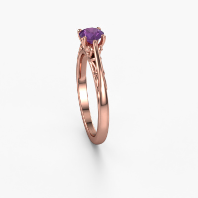 This 14 Carat rose gold ring is called Shannon rnd and is set with amethyst. How would you describe the style of the love of your life? Does she have a unique sense of style? This stunning ajour rose gold engagement ring can be custom made to your own or her liking. Our amethysten gemstones have been carefully selected because we believe your fantasy engagement ring must be adorned with nothing but the most beautiful gemstone. Don't you agree? This jewel is made with passion and love by one of our master goldsmiths.By using a combination of the latest modern techniques, combined with ancient crafting, we can make all our engagement rings in our own studio. Each jewel is made to order. This is advantageous because we can offer you a price you won't find anywhere else.Do you have a specific ring in mind? One you came across somewhere. Please feel free to tell us your wishes and we will turn your design into a unique engagement ring. You can follow the development of your ring design because we use 3D drawings. This gives you a realistic preview of your design. We will gladly send you a non-binding offer, based on a fair price/ quality ratio. It will amaze you.To make it easier for you, we offer a 30 day return policy. Check our terms and conditions.