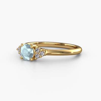This 14 Carat gold ring is called Felipa RND and is set with 5 mm aquamarine. What is it that makes your relationship unique? What is it about her that makes you want to bend down on one knee? The unique bond between the two of you is emphasized by an equally unique ring. A one of a kind ajour 3-stone engagement ring made especially for her. That is why this fantasy ring fits her like a glove. Each specific detail of this ajour gold aquamarine set engagement ring is hand-picked, crafted and polished by our expert goldsmith. The result is an exquisite ring, unique and perfectly crafted to perfection. That is what our expert Goldsmiths strive for. This jewel is made just for you by our master goldsmiths in our own studio.After receiving your order, our goldsmiths will passionately start the creative process of making your engagement ring in our own studio. Because we don't have a big stockpile, these costs will not be passed on to you. Our pricing is proof of that! We offer top quality jewels at lowest price, guaranteed.Have you found a specific engagement ring somewhere which you would like to give to your loved one? Please feel free to express your wishes to our jewel designers because we would be honored to turn your design into a fantasy engagement ring. You can follow the development of your ring design because we use 3D drawings. This gives you a realistic preview of how your design will look. You can also preorder a dummy. A dummy is a plastic ring, which can be shaped according your ring design. You can try it on and check if its width and size are suitable for you. We will gladly send you a non-binding offer, based on a fair price/ quality ratio. It will amaze you, considering the quality of the ring and gemstones.To make it easier for you, we offer a 30 day return policy. Check our terms and conditions.