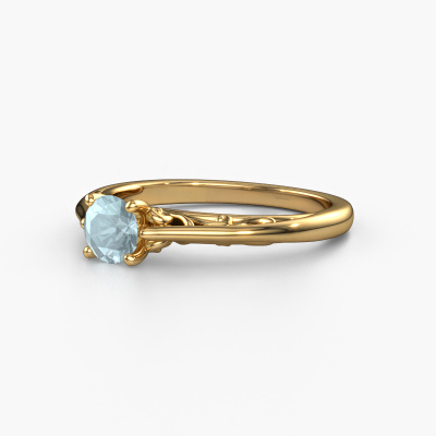 This 14 Carat gold ring is called Shannon rnd and is set with aquamarine. How would you describe the style of the love of your life? Does she have a unique sense of style? This stunning ajour gold engagement ring can be custom made to your own or her liking. Our aquamarine gemstones have been carefully selected because we believe your fantasy engagement ring must be adorned with nothing but the most beautiful gemstone. Don't you agree? This jewel is made with passion and love by one of our master goldsmiths.By using a combination of the latest modern techniques, combined with ancient crafting, we can make all our engagement rings in our own studio. Each jewel is made to order. This is advantageous because we can offer you a price you won't find anywhere else.Do you have a specific ring in mind? One you came across somewhere. Please feel free to tell us your wishes and we will turn your design into a unique engagement ring. You can follow the development of your ring design because we use 3D drawings. This gives you a realistic preview of your design. We will gladly send you a non-binding offer, based on a fair price/ quality ratio. It will amaze you.To make it easier for you, we offer a 30 day return policy. Check our terms and conditions.