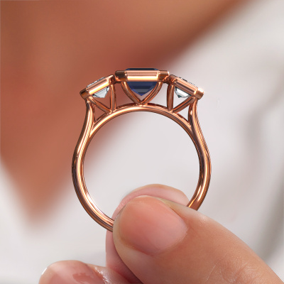 This 14 Carat rose gold ring is called Lavon 3 EME and is set with 8x6 mm sapphire. This exclusive rose gold bezel set engagement ring is a true work of art! The ornaments are crafted with a lot of patience and great passion. In order to create this ring with great precision, this craft requires a keen eye and skillful hand. A challenge which ignites a fire in our expert goldsmith. The exquisite sapphire are set in a special way so they stand out even more. This gives the ring an even more glamorous appearance. The special engagement ring is actually unique on its own because of the gemstones which we carefully select especially for this ring. On top of that you select the precious metals which will be used to create a unique ring for the most extraordinary woman in your life! This jewel [extra1_long][bestp1v_long]Do you have a specific ring in mind? One you came across somewhere. Please feel free to tell us your wishes and we will turn your design into a unique engagement ring. You can follow the development of your ring design because we use 3D drawings. This gives you a realistic preview of your design. We will gladly send you a non-binding offer, based on a fair price/ quality ratio. It will amaze you.To make it easier for you, we offer a 30 day return policy. Check our terms and conditions.