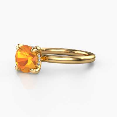 In your eyes, no one else compares to her. She is one in a million, unlike anyone else and pure? These qualities are emphasized perfectly by our exclusive gold solitaire citrin ring. This citrin is carefully selected by our keen artisan goldsmiths. It equals the unique qualities of the love of your life. There is no better way to memorialize your proposal than this symbol of true love. The ring shown above is called the Simone RND 2, we call this a solitaire ring because it contains a single gemstone. The engagement ring is made in 14 Carat gold and has a round citrin of 7.3 mm. Each piece of jewelry is unique in every way! Simply customize to your liking,After receiving your order, our goldsmiths will passionately start the creative process of making your engagement ring in our own studio. Because we don't have a big stockpile, these costs will not be passed on to you. Our pricing is proof of that! We offer top quality jewels at lowest price, guaranteed.Our team adds new designs to our online collection daily. Our designers and goldsmiths work together in creating the best design. We strive to offer a diverse collection of jewels. Perhaps you have a specific jewel design in mind. One you came across somewhere. Please contact us for a free consultation. We will make you an offer, based on a fair price/ quality ratio, that will baffle you.To make it easier for you, we offer a 30 day return policy. Check our terms and conditions.