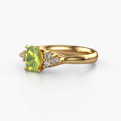This 14 Carat gold ring is called Monika OVL and is set with 7x5 mm peridot. Are you looking for a classic gold engagement ring which you can customize to your own liking? This classic engagement ring is set with peridot which is carefully selected for this specific ring in order to create the best effect. Our expert goldsmith will create your ring in our own crafting studio, where the peridot will be set with great care. The ring will then be polished till it shines perfectly. Nothing but the best for the love of your life! The great thing about our online tool is, that you can compile your own jewelry into a unique, personalized piece. Each piece of jewelry is unique in every way! Simply customize to your likingAre you on a budget? Please feel free to contact us, so we can go discuss your options. We offer our engagement rings at guaranteed best price, because we make them to order. You won't find such a price anywhere else!Our team adds new designs to our online collection daily. Our designers and goldsmiths work together in creating the best design. We strive to offer a diverse collection of jewels. Perhaps you have a specific jewel design in mind. One you came across somewhere. Please contact us for a free consultation. We will make you an offer, based on a fair price/ quality ratio, that will baffle you.To make it easier for you, we offer a 30 day return policy. Check our terms and conditions.