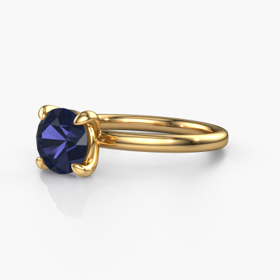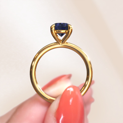 The ring shown above is called the Simone RND 1. We call this a solitaire ring because it contains a single gemstone. The engagement ring is made in 14 Carat gold and has a round sapphire of 7.3 mm. This extraordinary classic gold solitaire engagement ring is set with a beautiful round sapphire to add sparkle to your proposal. The open prong setting allows light to strike the gemstone from various angles. Did you know a diamond represents everlasting love and fidelity? This makes it a perfect centerpiece. Our goldsmith carefully positions the gemstone of your choosing high on top of the ring, which makes it stand out. Each piece of jewelry is made just for you, with attention to detail and design.By using a combination of the latest modern techniques, combined with ancient crafting, we can make all our engagement rings in our own studio. Each jewel is made to order. This is advantageous because we can offer you a price you won't find anywhere else.Different styles of new rings are made daily by our team. Perhaps you have found a solitaire engagement ring somewhere. One you would like to give to your loved one. Please feel free to share your thoughts and design with our jewel designers. We would love to turn your design into a classic engagement ring. You can follow the development of your ring design because we use very detailed 3D drawings. On top of that, you can order a dummy of the design. A dummy is a plastic ring, which can be shaped according your ring design. You can try it on and check if the engagement ring is up to standard. We will gladly send you a non-binding offer, based on a fair price/ quality ratio. The offer will baffle you, considering the quality of the ring and gemstones.To make it easier for you, we offer a 30 day return policy. Check our terms and conditions.