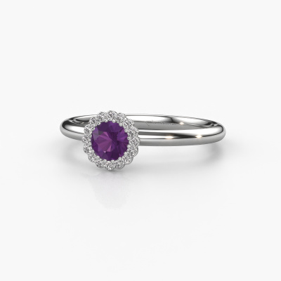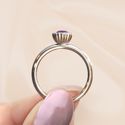 This platinum ring is called Queen and is set with 4.2 mm amethyst. For you, there is only one person in your life who stands out in a crowd. Only one that makes your heart skip a beat. A true gem! She, above all others, deserves a special gift. A unique customized jewel made in her honor. We believe this ring is perfect for your special moment. Each detail of this exclusive platinum cluster engagement ring is selected by hand, crafted and polished by our expert goldsmith in our own artisan studio. We strive to achieve the perfect design and composition of the ring, so it enhances the unique features of our amethysten, and lets them shine even brighter. It takes a lot of precision to make but in the end it pays off because of the sheer beauty of the ring. And that is our main goal. It's what gets us excited. The great thing about our online tool is, that you can design your own jewelry into a unique, personalized piece. This unique charming engagement ring is created with the precious metal combination of platinum and platinum. But of course you are completely free to select other colors. Each piece of jewelry is made just for you by our master goldsmiths in our own studio.Are you on a budget? Please feel free to contact us, so we can go discuss your options. We offer our engagement rings at guaranteed best price, because we make them to order. You won't find such a price anywhere else!Our team adds new designs to our online collection daily. Our designers and goldsmiths work together in creating the best design. We strive to offer a diverse collection of jewels. Perhaps you have a specific jewel design in mind. One you came across somewhere. Please contact us for a free consultation. We will make you an offer, based on a fair price/ quality ratio, that will baffle you.To make it easier for you, we offer a 30 day return policy. Check our terms and conditions.