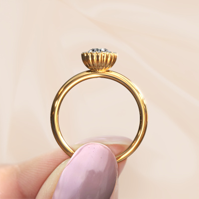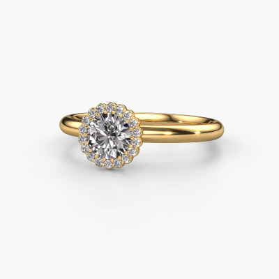 This 14 Carat gold ring is called Queen and is set with 0.59 crt diamond. For you, there is only one person in your life who stands out in a crowd. Only one that makes your heart skip a beat. A true gem! She, above all others, deserves a special gift. A unique customized jewel made in her honor. We believe this ring is perfect for your special moment. Each detail of this exclusive gold cluster engagement ring is selected by hand, crafted and polished by our expert goldsmith in our own artisan studio. We strive to achieve the perfect design and composition of the ring, so it enhances the unique features of our diamonds, and lets them shine even brighter. It takes a lot of precision to make but in the end it pays off because of the sheer beauty of the ring. And that is our main goal. It's what gets us excited. The great thing about our online tool is, that you can design your own jewelry into a unique, personalized piece. This unique charming engagement ring is created with the precious metal combination of gold and gold. But of course you are completely free to select other colors. Each piece of jewelry is made just for you by our master goldsmiths in our own studio.Are you on a budget? Please feel free to contact us, so we can go discuss your options. We offer our engagement rings at guaranteed best price, because we make them to order. You won't find such a price anywhere else!Our team adds new designs to our online collection daily. Our designers and goldsmiths work together in creating the best design. We strive to offer a diverse collection of jewels. Perhaps you have a specific jewel design in mind. One you came across somewhere. Please contact us for a free consultation. We will make you an offer, based on a fair price/ quality ratio, that will baffle you.To make it easier for you, we offer a 30 day return policy. Check our terms and conditions.