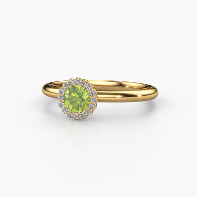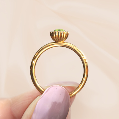 This 14 Carat gold ring is called Queen and is set with 4.2 mm peridot. For you, there is only one person in your life who stands out in a crowd. Only one that makes your heart skip a beat. A true gem! She, above all others, deserves a special gift. A unique customized jewel made in her honor. We believe this ring is perfect for your special moment. Each detail of this exclusive gold cluster engagement ring is selected by hand, crafted and polished by our expert goldsmith in our own artisan studio. We strive to achieve the perfect design and composition of the ring, so it enhances the unique features of our peridot, and lets them shine even brighter. It takes a lot of precision to make but in the end it pays off because of the sheer beauty of the ring. And that is our main goal. It's what gets us excited. The great thing about our online tool is, that you can design your own jewelry into a unique, personalized piece. This unique charming engagement ring is created with the precious metal combination of gold and gold. But of course you are completely free to select other colors. Each piece of jewelry is made just for you by our master goldsmiths in our own studio.Are you on a budget? Please feel free to contact us, so we can go discuss your options. We offer our engagement rings at guaranteed best price, because we make them to order. You won't find such a price anywhere else!Our team adds new designs to our online collection daily. Our designers and goldsmiths work together in creating the best design. We strive to offer a diverse collection of jewels. Perhaps you have a specific jewel design in mind. One you came across somewhere. Please contact us for a free consultation. We will make you an offer, based on a fair price/ quality ratio, that will baffle you.To make it easier for you, we offer a 30 day return policy. Check our terms and conditions.