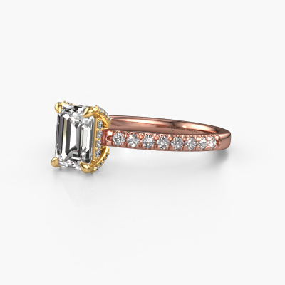 The ring shown above is called the Saskia eme 1, we call this a solitaire ring because it contains a single gemstone. The engagement ring is made in 14 Carat rose gold and has a emerald cut custom diamond of 7x5 mm. The cool thing about our configurator is that you can compile your own piece of jewelry, into a completely personalized one. This solitaire ring is crafted in the precious metals rose gold with gold, but of course you are free to pick your own colors. Each piece of jewelry is made with passion and love by one of our master goldsmiths.The solitaire ring is a special type of engagement ring. Its open prong setting allows light to strike the gemstone from various angles. This exclusive engagement ring is a stunning eye-catcher because of the high positioning of the gemstone. In order for you to commemorate your proposal with a unique ring, we carefully adorn this solitaire ring by hand. The love of your life deserves nothing but the best. After receiving your order, our goldsmiths will passionately start the creative process of making your engagement ring in our own studio. Because we don't have a big stockpile, these costs will not be passed on to you. Our pricing is proof of that! We offer top quality jewels at lowest price, guaranteed.Our team adds new designs to our online collection daily. Our designers and goldsmiths work together in creating the best design. We strive to offer a diverse collection of jewels. Perhaps you have a specific jewel design in mind. One you came across somewhere. Please contact us for a free consultation. We will make you an offer, based on a fair price/ quality ratio, that will baffle you.To make it easier for you, we offer a 30 day return policy. Check our terms and conditions.