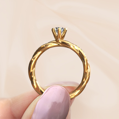 In your eyes, no one else compares to her. She is one in a million, unlike anyone else and pure? These qualities are emphasized perfectly by our fantasy gold solitaire diamond ring. This diamond is carefully selected by our keen artisan goldsmiths. It equals the unique qualities of the love of your life. There is no better way to memorialize your proposal than this symbol of true love. The ring shown above is called the Page, we call this a solitaire ring because it contains a single gemstone. The engagement ring is made in 14 Carat gold and has a round diamond of 0.30 crt. Each piece of jewelry is made with passion and love by one of our master goldsmiths.Are you on a budget? Please feel free to contact us, so we can go discuss your options. We offer our engagement rings at guaranteed best price, because we make them to order. You won't find such a price anywhere else!Do you have a specific ring in mind? One you came across somewhere. Please feel free to tell us your wishes and we will turn your design into a unique engagement ring. You can follow the development of your ring design because we use 3D drawings. This gives you a realistic preview of your design. We will gladly send you a non-binding offer, based on a fair price/ quality ratio. It will amaze you.To make it easier for you, we offer a 30 day return policy. Check our terms and conditions.