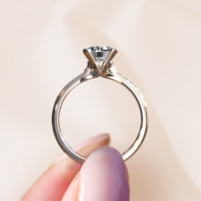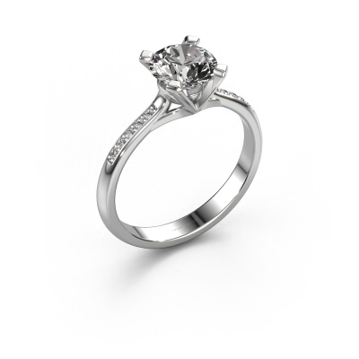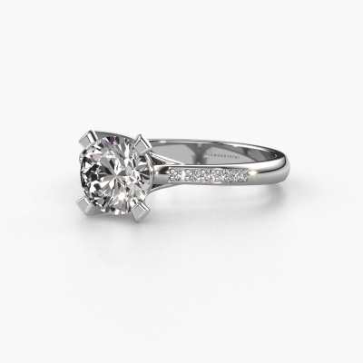 The ring shown above is called the Isa 2. We call this type of ring a pavé solitaire ring because it has one center gemstone and a band that is also pave set with gemstones. This engagement ring is made in platinum set with a 1.00 crt round diamond, and pave set diamonds at the sides. Each piece of jewelry is created to add sparkle to your finger, each jewel is lovingly made by hand by our goldsmiths.This classic platinum pavé solitaire engagement ring has an exquisite round diamond center stone. To further accentuate the center stone, the band is set full with more diamonds. Its open prong setting allows light to strike the diamond from various angles and this adds sparkle to your diamond ring. The photo shown above depicts the goldsmith's carefully handcrafted details of the ring. The high positioning of the center stone is truly eye-catching. The perfect engagement ring for the crown jewel of your life!After receiving your order, our goldsmiths will passionately start the creative process of making your engagement ring in our own studio. Because we don't have a big stockpile, these costs will not be passed on to you. Our pricing is proof of that! We offer top quality jewels at lowest price, guaranteed.Different styles of new rings are made daily by our team. Perhaps you have found a pavé solitaire engagement ring somewhere. One you would like to give to your loved one. Please feel free to share your thoughts and design with our jewel designers. We would love to turn your design into a classic engagement ring. You can follow the development of your ring design because we use very detailed 3D drawings. On top of that, you can order a dummy of the design. A dummy is a plastic ring, which can be shaped according your ring design. You can try it on and check if the engagement ring is up to standard. We will gladly send you a non-binding offer, based on a fair price/ quality ratio. The offer will baffle you, considering the quality of the ring and gemstones.To make it easier for you, we offer a 30 day return policy. Check our terms and conditions.