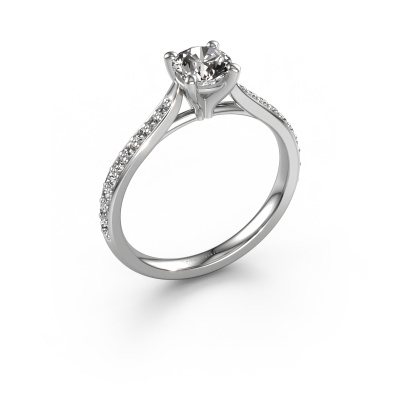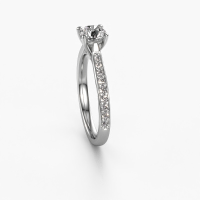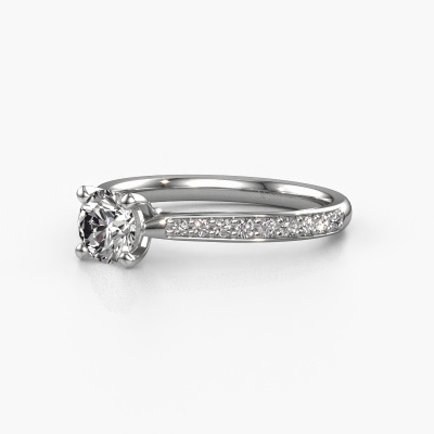 The ring shown above is called the Mignon rnd 2. We call this type of ring a pavé solitaire ring because it has one center gemstone and a band that is also pave set with gemstones. The platinum engagement ring is set with a round 0.60 crt diamond center stone and the band is pave set with lab-grown diamond gemstones. Each jewel is made by a team of passionate goldsmiths and jewel designers. This will make your crown jewel truly eye-catching.This luxury platinum pavé solitaire engagement ring has an exquisite round diamond center stone. To further accentuate the center stone, the band is fully set with more lab grown diamonds. Its open prong setting allows light to strike the diamond from various angles and this adds sparkle to your diamond ring. The photo shown above depicts the goldsmith's carefully handcrafted details of the ring. The high positioning of the center stone is truly eye-catching. The perfect engagement ring for the crown jewel of your life! By using our modern techniques, we can design and customize the finest quality jewels with the utmost care for you. Our engagement rings are always priced 30 percent lower than other jewelers. We make engagement rings to order so we don't have to maintain a large stock. If you have a certain budget, we are more than happy to advice you accordingly.Different styles of new rings are made daily by our team. Perhaps you have found a pavé solitaire engagement ring somewhere. One you would like to give to your loved one. Please feel free to share your thoughts and design with our jewel designers. We would love to turn your design into a luxury engagement ring. You can follow the development of your ring design because we use very detailed 3D drawings. On top of that, you can order a dummy of the design. A dummy is a plastic ring, which can be shaped according your ring design. You can try it on and check if the engagement ring is up to standard. We will gladly send you a non-binding offer, based on a fair price/ quality ratio. The offer will baffle you, considering the quality of the ring and gemstones.To make it easier for you, we offer a 30 day return policy. Check our terms and conditions.