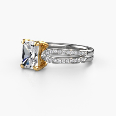 The ring shown above is called the Antonia rad 2. We call this type of ring a pavé solitaire ring because it has one center gemstone and a band that is also pave set with gemstones. The 14 Carat white gold engagement ring is set with a radiant 1.50 crt diamond center stone and the band is pave set with diamond gemstones. Each jewel is made just for you by our master goldsmiths in our own studio.This chic white gold pavé solitaire engagement ring has an exquisite radiant diamond center stone. To further accentuate the center stone, the band is fully set with more diamonds. Its open prong setting allows light to strike the diamond from various angles and this adds sparkle to your diamond ring. The photo shown above depicts the goldsmith's carefully handcrafted details of the ring. The high positioning of the center stone is truly eye-catching. The perfect engagement ring for the crown jewel of your life! Because we design and deliver our own rings, we can offer you a engagement ring at a price you won't find anywhere else. A ring is made to order, which helps prevent excess supplies, so we can make you a great price offer. We understand it feels risky, buying your engagement ring online, but we will gladly assist in the designing process, taking your budget into consideration.Our team adds new designs to our online collection daily. Our designers and goldsmiths work together in creating the best design. We strive to offer a diverse collection of jewels. Perhaps you have a specific jewel design in mind. One you came across somewhere. Please contact us for a free consultation. We will make you an offer, based on a fair price/ quality ratio, that will baffle you.To make it easier for you, we offer a 30 day return policy. Check our terms and conditions.