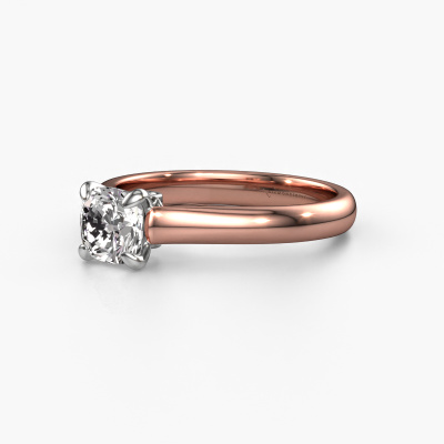 The ring shown above is called the Valorie cus 1, we call this a solitaire ring because it contains a single gemstone. The engagement ring is made in 14 Carat rose gold and has a cushion diamond of 1.00 crt. The cool thing about our configurator is that you can compile your own piece of jewelry, into a completely personalized one. This solitaire ring is crafted in the precious metals rose gold with white gold, but of course you are free to pick your own colors. Each piece of jewelry is made to shine bright around your finger. Each jewel is hand made with love by our goldsmiths.The solitaire ring is a special type of engagement ring. Its open prong setting allows light to strike the gemstone from various angles. This classic engagement ring is a stunning eye-catcher because of the high positioning of the gemstone. In order for you to commemorate your proposal with a unique ring, we carefully adorn this solitaire ring by hand. The love of your life deserves nothing but the best. Are you on a budget? Please feel free to contact us, so we can go discuss your options. We offer our engagement rings at guaranteed best price, because we make them to order. You won't find such a price anywhere else!Have you found a specific engagement ring somewhere which you would like to give to your loved one? Please feel free to express your wishes to our jewel designers because we would be honored to turn your design into a classic engagement ring. You can follow the development of your ring design because we use 3D drawings. This gives you a realistic preview of how your design will look. You can also preorder a dummy. A dummy is a plastic ring, which can be shaped according your ring design. You can try it on and check if its width and size are suitable for you. We will gladly send you a non-binding offer, based on a fair price/ quality ratio. It will amaze you, considering the quality of the ring and gemstones.To make it easier for you, we offer a 30 day return policy. Check our terms and conditions.