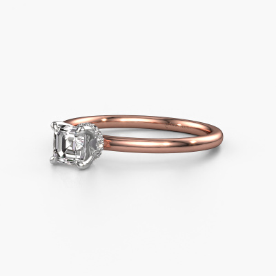 The ring shown above is called the Crystal ASSC 3, we call this a solitaire ring because it contains a single gemstone. The engagement ring is made in 14 Carat rose gold and has a asscher diamond of 0.50 crt. The cool thing about our configurator is that you can compile your own piece of jewelry, into a completely personalized one. This solitaire ring is crafted in the precious metals rose gold with white gold, but of course you are free to pick your own colors. Each piece of jewelry is created to add sparkle to your finger, each jewel is lovingly made by hand by our goldsmiths.The solitaire ring is a special type of engagement ring. Its open prong setting allows light to strike the gemstone from various angles. This exclusive engagement ring is a stunning eye-catcher because of the high positioning of the gemstone. In order for you to commemorate your proposal with a unique ring, we carefully adorn this solitaire ring by hand. The love of your life deserves nothing but the best. By using our modern techniques, we can design and customize the finest quality jewels with the utmost care for you. Our engagement rings are always priced 30 percent lower than other jewelers. We make engagement rings to order so we don't have to maintain a large stock. If you have a certain budget, we are more than happy to advice you accordingly.Do you have a specific ring in mind? One you came across somewhere. Please feel free to tell us your wishes and we will turn your design into a unique engagement ring. You can follow the development of your ring design because we use 3D drawings. This gives you a realistic preview of your design. We will gladly send you a non-binding offer, based on a fair price/ quality ratio. It will amaze you.To make it easier for you, we offer a 30 day return policy. Check our terms and conditions.
