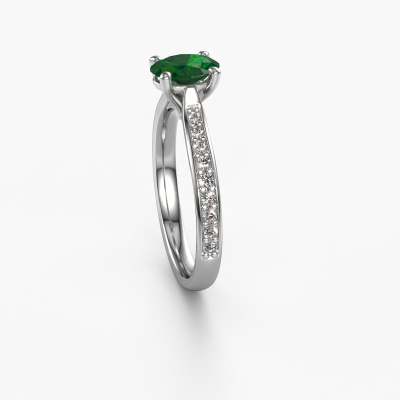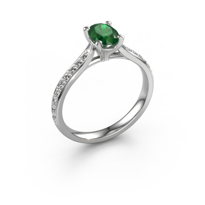 The ring shown above is called the Mignon ovl 2, we call this a solitaire ring because it contains a single gemstone. The engagement ring is made in platinum and has a oval emerald of 7x5 mm. The cool thing about our configurator is that you can compile your own piece of jewelry, into a completely personalized one. This solitaire ring is crafted in the precious metals platinum with platinum, but of course you are free to pick your own colors. Each piece of jewelry is made with passion and love by one of our master goldsmiths.The solitaire ring is a special type of engagement ring. Its open prong setting allows light to strike the gemstone from various angles. This chic engagement ring is a stunning eye-catcher because of the high positioning of the gemstone. In order for you to commemorate your proposal with a unique ring, we carefully adorn this solitaire ring by hand. The love of your life deserves nothing but the best. After receiving your order, our goldsmiths will passionately start the creative process of making your engagement ring in our own studio. Because we don't have a big stockpile, these costs will not be passed on to you. Our pricing is proof of that! We offer top quality jewels at lowest price, guaranteed.Our team adds new designs to our online collection daily. Our designers and goldsmiths work together in creating the best design. We strive to offer a diverse collection of jewels. Perhaps you have a specific jewel design in mind. One you came across somewhere. Please contact us for a free consultation. We will make you an offer, based on a fair price/ quality ratio, that will baffle you.To make it easier for you, we offer a 30 day return policy. Check our terms and conditions.