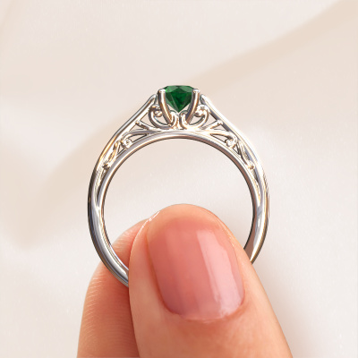 This platinum ring is called Shannon rnd and is set with emerald. How would you describe the style of the love of your life? Does she have a unique sense of style? This stunning ajour platinum engagement ring can be custom made to your own or her liking. Our emeralds gemstones have been carefully selected because we believe your fantasy engagement ring must be adorned with nothing but the most beautiful gemstone. Don't you agree? This jewel is made with passion and love by one of our master goldsmiths.By using a combination of the latest modern techniques, combined with ancient crafting, we can make all our engagement rings in our own studio. Each jewel is made to order. This is advantageous because we can offer you a price you won't find anywhere else.Do you have a specific ring in mind? One you came across somewhere. Please feel free to tell us your wishes and we will turn your design into a unique engagement ring. You can follow the development of your ring design because we use 3D drawings. This gives you a realistic preview of your design. We will gladly send you a non-binding offer, based on a fair price/ quality ratio. It will amaze you.To make it easier for you, we offer a 30 day return policy. Check our terms and conditions.