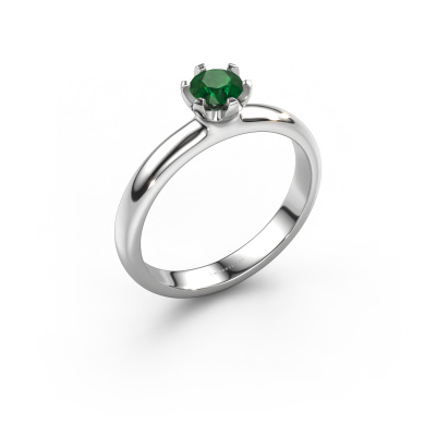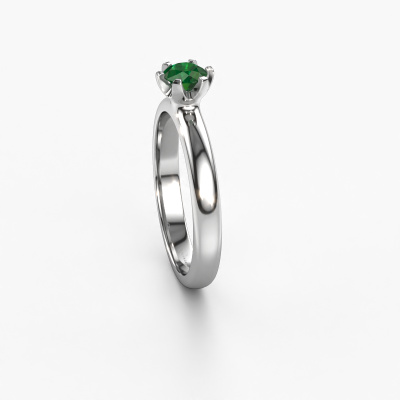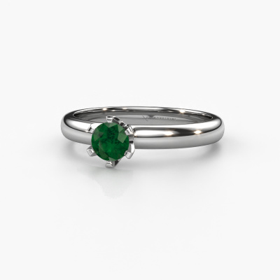 In your eyes, no one else compares to her. She is one in a million, unlike anyone else and pure? These qualities are emphasized perfectly by our modern white gold solitaire emerald ring. This emerald is carefully selected by our keen artisan goldsmiths. It equals the unique qualities of the love of your life. There is no better way to memorialize your proposal than this symbol of true love. The ring shown above is called the Lorretta, we call this a solitaire ring because it contains a single gemstone. The engagement ring is made in 14 Carat white gold and has a round emerald of 4.7 mm. Each piece of jewelry is made with passion and love by one of our master goldsmiths.By using a combination of the latest modern techniques, combined with ancient crafting, we can make all our engagement rings in our own studio. Each jewel is made to order. This is advantageous because we can offer you a price you won't find anywhere else.Our team adds new designs to our online collection daily. Our designers and goldsmiths work together in creating the best design. We strive to offer a diverse collection of jewels. Perhaps you have a specific jewel design in mind. One you came across somewhere. Please contact us for a free consultation. We will make you an offer, based on a fair price/ quality ratio, that will baffle you.To make it easier for you, we offer a 30 day return policy. Check our terms and conditions.