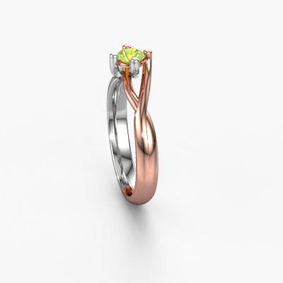 This 14 Carat rose gold ring is called Paulien and is set with 4 mm peridot. Are you looking for a fantasy rose gold engagement ring which you can customize to your own liking? This fantasy engagement ring is set with peridot which is carefully selected for this specific ring in order to create the best effect. Our expert goldsmith will create your ring in our own crafting studio, where the peridot will be set with great care. The ring will then be polished till it shines perfectly. Nothing but the best for the love of your life! The great thing about our online tool is, that you can compile your own jewelry into a unique, personalized piece. Each piece of jewelry is made just for you, with attention to detail and design.Are you on a budget? Please feel free to contact us, so we can go discuss your options. We offer our engagement rings at guaranteed best price, because we make them to order. You won't find such a price anywhere else!Our team adds new designs to our online collection daily. Our designers and goldsmiths work together in creating the best design. We strive to offer a diverse collection of jewels. Perhaps you have a specific jewel design in mind. One you came across somewhere. Please contact us for a free consultation. We will make you an offer, based on a fair price/ quality ratio, that will baffle you.To make it easier for you, we offer a 30 day return policy. Check our terms and conditions.