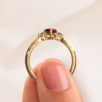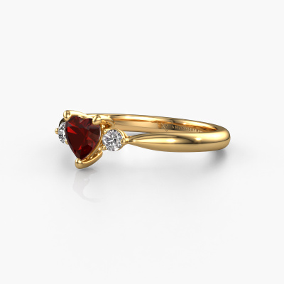 This 14 Carat gold ring is called Lieselot HRT and is set with garnet. How would you describe the style of the love of your life? Does she have a unique sense of style? This stunning graceful gold engagement ring can be custom made to your own or her liking. Our garnet gemstones have been carefully selected because we believe your fantasy engagement ring must be adorned with nothing but the most beautiful gemstone. Don't you agree? This jewel is made just for you, with attention to detail and design.After receiving your order, our goldsmiths will start the creative process of making your Lieselot HRT engagement ring. We don't keep stock. This is advantageous because these costs will not be passed on to you. Therefore, we can offer jewelry at exceptionally low prices.Our designers and goldsmiths work together each day, creating new jewels. Perhaps you have found a nice fantasy engagement ring somewhere, which can be used to customize your unique ring. Please feel free to contact us. We will make you an offer, based on a fair price/ quality ratio, which will amaze you.To make it easier for you, we offer a 30 day return policy. Check our terms and conditions.