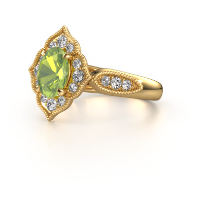 This 14 Carat gold ring is called Rosan and is set with peridot. An extraordinary gold vintage ring. One that will surely make the love of your life shine like a diamond! That is what we hope to achieve. This vintage engagement ring is set with exquisite peridot. Whichever gemstone you choose from our selection, is up to you. The gemstone is selected with great care because we believe your engagement ring must be adorned with nothing but the most beautiful gemstone. Wouldn't you agree? Our expert goldsmith will design your ring in our own artisan studio, where the peridot will be set with great precision. The ring will then be polished till it is absolutely perfect. Nothing but the best for the love of your life! This jewel is made just for you by our master goldsmiths in our own studio.After receiving your order, our goldsmiths will passionately start the creative process of making your engagement ring in our own studio. Because we don't have a big stockpile, these costs will not be passed on to you. Our pricing is proof of that! We offer top quality jewels at lowest price, guaranteed.Our team adds new designs to our online collection daily. Our designers and goldsmiths work together in creating the best design. We strive to offer a diverse collection of jewels. Perhaps you have a specific jewel design in mind. One you came across somewhere. Please contact us for a free consultation. We will make you an offer, based on a fair price/ quality ratio, that will baffle you.To make it easier for you, we offer a 30 day return policy. Check our terms and conditions.